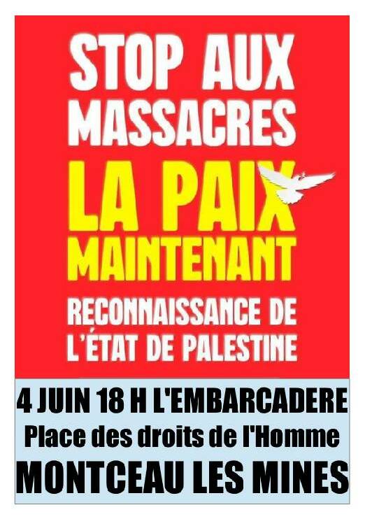 Communiqué – Devant la gravité de la situation à GAZA et en Cisjordanie occupée, la section PCF du Bassin Minier à décidé d’inviter les partis, syndicats, associations et mouvements qui le désirent à nous rejoindre pour l’organisation d’un rassemblement pour dire « GAZA, stop aux massacres », « la paix maintenant » et « reconnaissance immédiate de l’Etat de Palestine ».