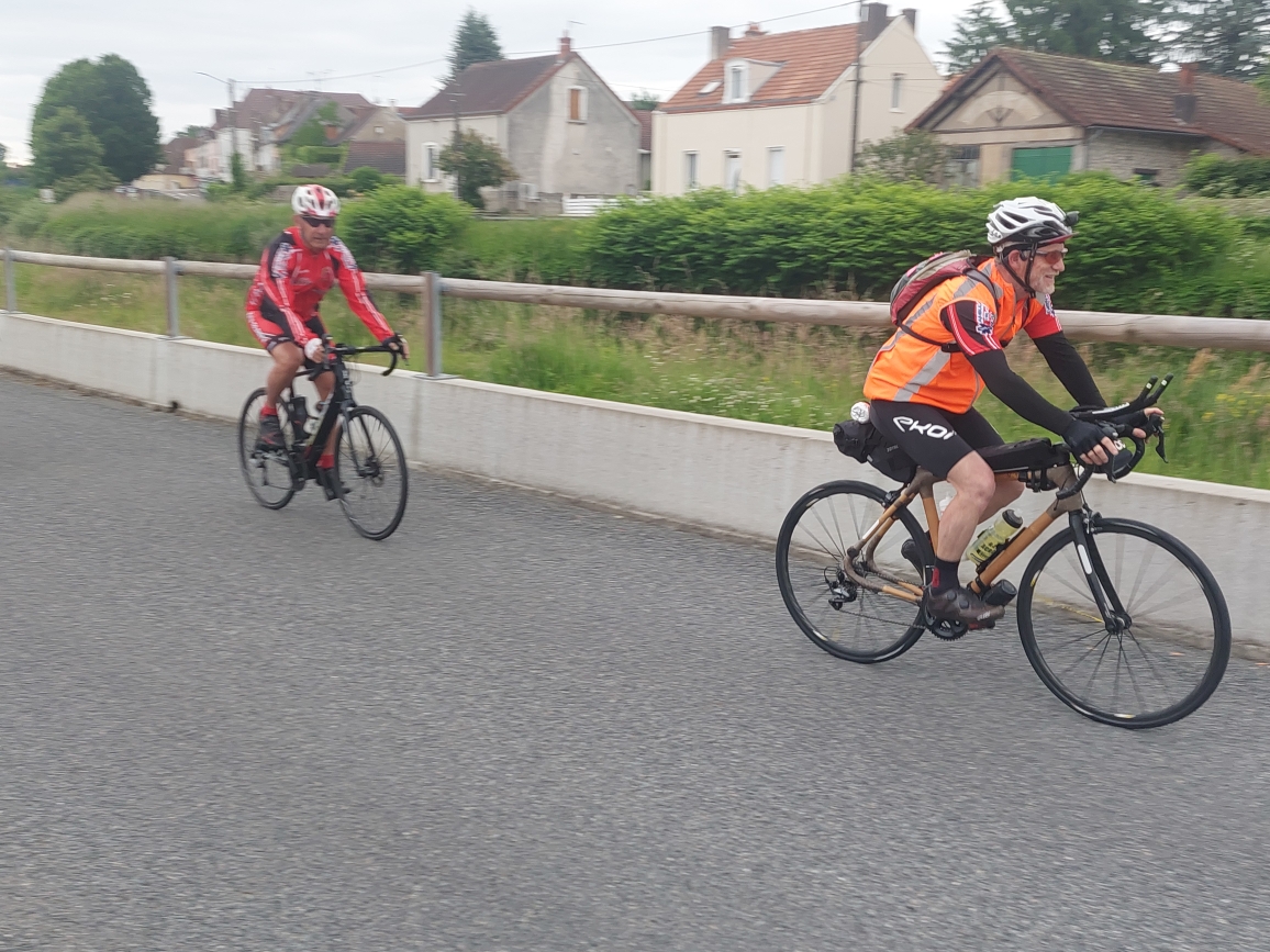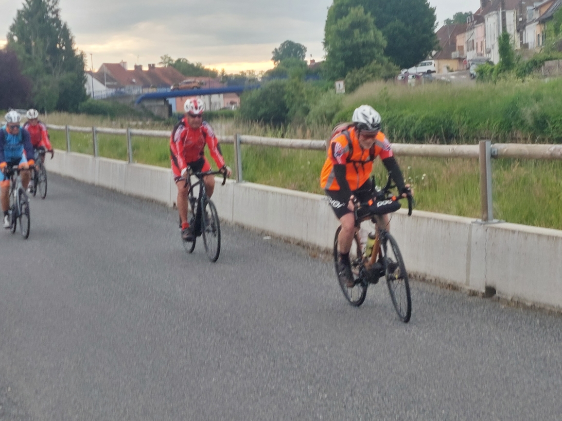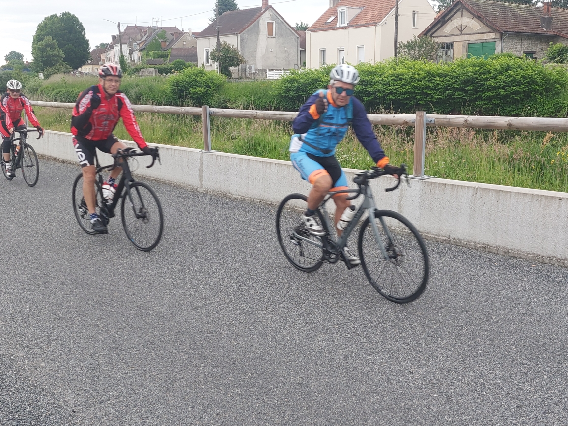 Cette fois-ci, Gilles Penot n’est pas parti seul, des membres de sa team Bambou l’accompagnent mais le seul qui a l’intention d’aller au bout, c’est Santiago (président de l’association). Laurent, lui, mettra le clignotant vers Roanne, les autres, profiteront par moments du minibus de la ville de Blanzy avec Sophie au volant.