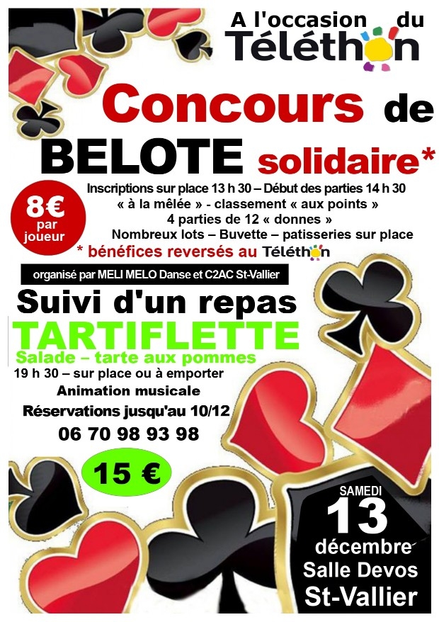 Au programme, samedi 13 décembre, concours de belote et tartiflette à la salle Raymond Devos.