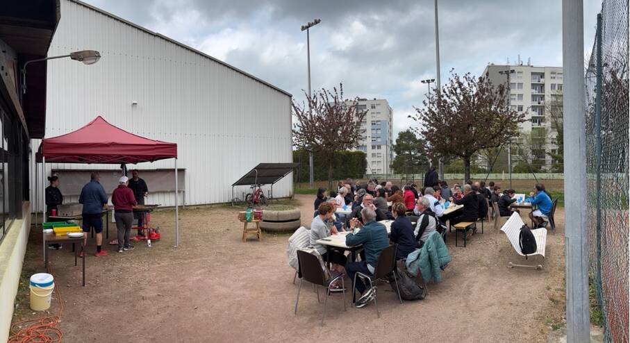 Malgré des prévisions pluvieuses et donc un repas envisagé en intérieur, la météo est elle aussi venue embellir la journée et les joueurs, supporters et bénévoles ont pu profiter du couscous en extérieur.