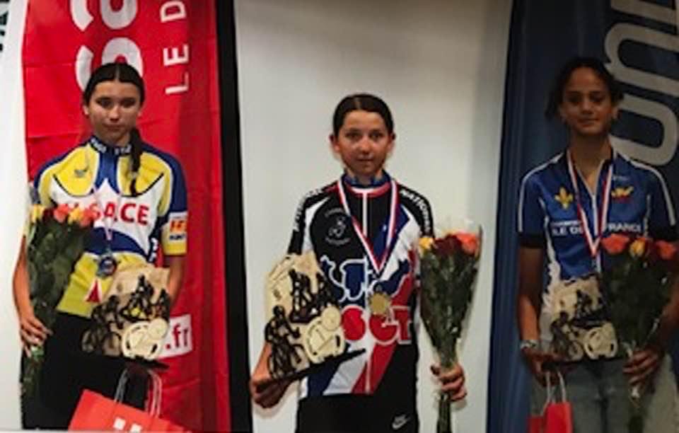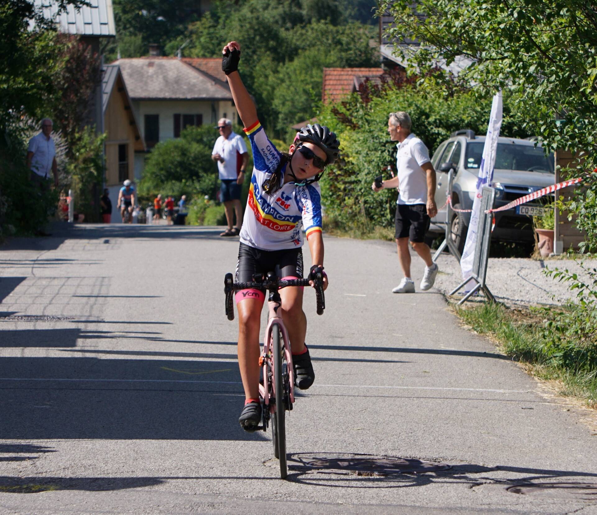 En minime F : Laurine DUCOTÉ est championne de France. C’est un rêve qui se réalise pour Laurine. Elle a travaillé toute la saison pour ce championnat. Un départ rapide des 2 concurrentes favorites. Laurine revient au train. Elle tente une accélération dans la grosse difficulté qui sera fatale à ses adversaires. Elle fera les 10 derniers kilomètres seule à l’avant pour remporter sa plus belle victoire.