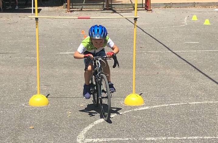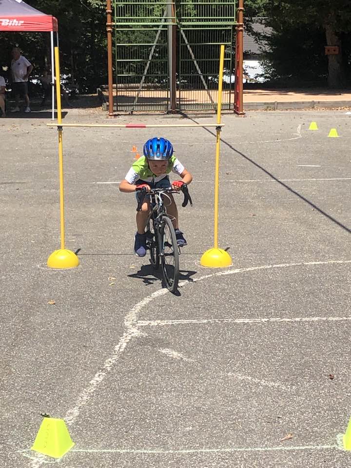 En école de vélo : jeux d’adresse, sprints et course en ligne.