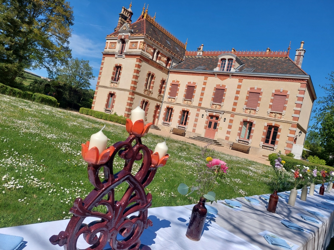 Dans la douceur d’un printemps lumineux, au cœur d’un champ de pâquerettes semé dans une herbe tendre et généreuse, une longue table s’étirait, comme posée là par enchantement. Elle attendait, silencieuse encore, la soixantaine de convives venus goûter à cet instant exquis. Une présence pourtant manquait, celle de Jean-Marie Perrusson, qui fit ériger cette demeure en 1869 et lui offrit son âme. Ici, la céramique trouva son maître et un écrin à sa mesure.