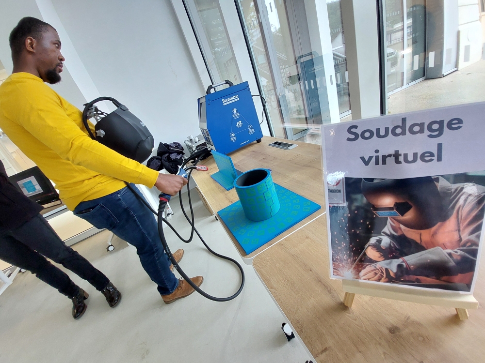 A hub&go on y trouve des technologies nées de l’intelligence de l’homme. Avec du concret comme le soudage virtuel qui s’invite dans les centres de formation. Un outil qui évite le gaspillage de la matière et permet à l’apprenti de se familiariser avec la torche et toutes les formes de soudure. La machine détecte les bons et les mauvais points de soudure.