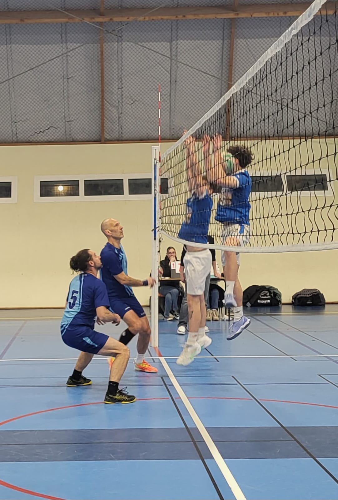 Le 1er set donne d’emblée le ton avec un premier point obtenu sur une « quéquette » des visiteurs suivie de quelques combinaisons gagnantes mais il en fallait bien plus vendredi pour impressionner les locaux. Aux chiches envoyées en bout de filet et à la pointe, l’ASPM répond du tac au tac par une défense de fer, un bloc efficace et ne cède pas un pouce de terrain à son adversaire. Les deux équipes sont au coude à coude et les protégés du président-coach-passeur Nico Verrier se la jouent costauds pour empocher la 1ère manche (25-23).