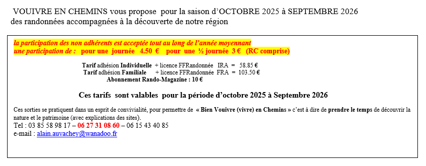 Pour OCTOBRE 2025 voici le détail de NOS 3 RANDONNEES ACCOMPAGNEES par un guide